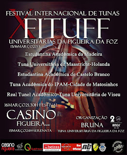 Decorreu no passado fim-de-semana de 14 Março o XII FITUFF - Festival Internacional de Tunas Universitárias da Figueira da Foz, organizado pela Tuna Bruna - Tuna Universitária da Figueira da Foz.